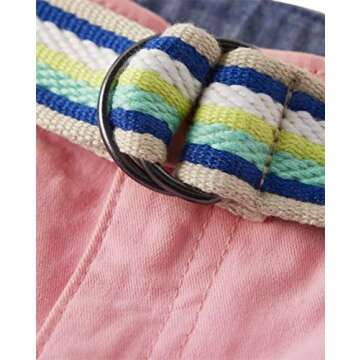 Show moreIntroducing the Gymboree Boys and Toddler Belted Twill Chino Shorts in the delightful Pink Ribbon color – perfectly suited for your little adventurer aged 18-24 months! Crafted from a soft and breathable fabric blend of 98% cotton twill and 2% spandex, these shorts are designed to provide ultimate comfort and flexibility for all-day play. Featuring a hook-and-bar button closure with a zip fly, they make dressing quick and easy while ensuring a snug fit. The inner adjustable waist tabs cater to sizes 4T-12, offering a customized fit for every growing toddler!
