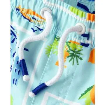 These swim trunks feature a pull-on elasticized waist with a functional drawstring, providing a customized fit that stays secure during all your child’s activities, whether at the pool or beach. With the added bonus of UPF 50+ sun protection, parents can have peace of mind knowing that their child’s delicate skin is shielded from harmful UV rays, making them an ideal companion for sunny days.