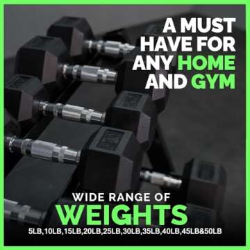 Show more If you're looking to elevate your fitness routine, look no further than our premium rubber hex dumbbell weight set with rack. This comprehensive set offers an impressive range of weights from 5LB to 45LB, making it ideal for all fitness enthusiasts - whether you're a beginner, an experienced athlete, or someone focused on achieving weight loss and strength goals.