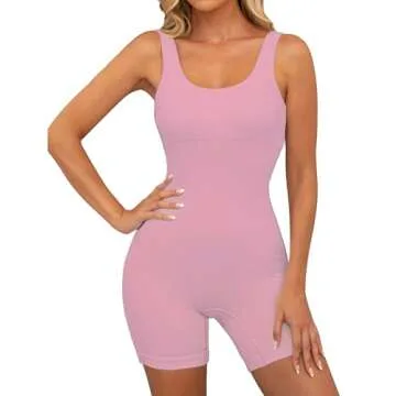 Show moreDiscover the ultimate in style and comfort with the GYMTITAN Workout Rompers. Designed for modern, active women, this seamless criss-cross backless square neck tank top is much more than just a basic bodysuit. Crafted from thick, stretchy material, it contours your body while providing excellent tummy control and support. You'll love how the ribbed texture shapes your curves, allowing you to confidently flaunt your figure during any fitness activities. Perfectly tailored for workouts or casual outings, this versatile one-piece jumpsuit effortlessly enhances your wardrobe.