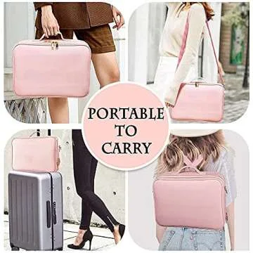 Show more Introducing the ultimate Travel Makeup Bag – a luxurious yet practical accessory designed for beauty enthusiasts on the go! Crafted from durable PU leather and featuring a tough plastic hard cover, this makeup travel case is not only stylish but incredibly functional. Its impressive dimensions of 16 × 5.5 × 11.4 inches make it perfect for organizing all your essential cosmetics, from lipsticks and makeup brushes to eyeshadow palettes and skincare products. With its waterproof, shake-proof, and anti-wear properties, your beauty items are safeguarded against the elements.