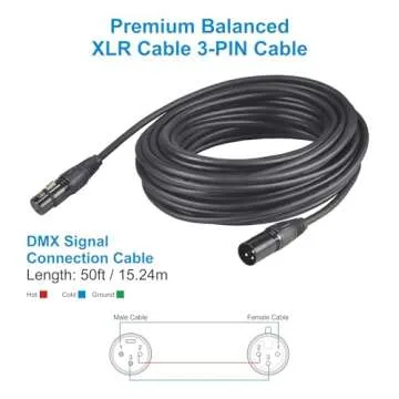 GZhumin DMX Cable 50ft, 2 Pack 15.24m DMX Cables 3 Pin Signal XLR Male to Female DMX Cable Wire, with Metal Connectors for Signal Transmission for DJ Lighting Equipment and Stage Lighting