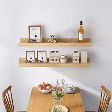 Gzshihu Solid Oak Shelving Wall Mounted, 35 Inch Rustic Wood Wall Storage Shelves, Long Wall Shelves Decorative Storage for Home Living, Kitchen, Bathroom, and Bedroom - Set of 2