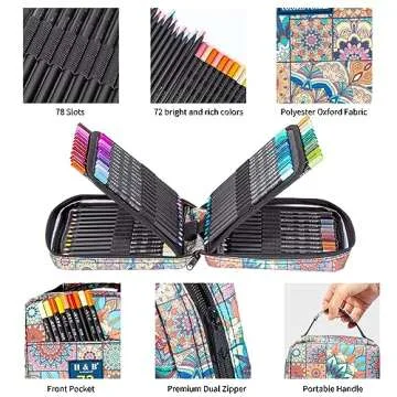 Alongside the colored pencils, this set also includes a beautifully crafted colored pencil case adorned with a stunning Mandala pattern. The case is designed with multi-layer compartments and 74 individual slots, ensuring that each pencil has its own secure space. With a portable handle and front pocket for additional storage, this dual zipper case is as practical as it is elegant, making it easy to take your creativity on the go!