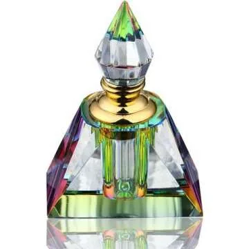 This perfume bottle is not just a container; it's a statement piece. The rectangular pyramid design is unique and sophisticated, making it an ideal gift for someone who appreciates fine craftsmanship and vintage aesthetics. Made from cut glass, it offers the look of a crystal bottle at a fraction of the cost, making it an excellent value for money. Its small size is balanced by its substantial weight, ensuring it feels solid and luxurious in the hand. The colors within the glass create a dazzling effect, capturing and reflecting light beautifully.