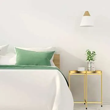 H HOMEWINS Tray Metal Round End Table,Gold Folding Small Side Table Outdoor & Indoor Accent Coffee Table for Small Spaces,Bedroom,Patio