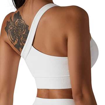 H-Quenby One Shoulder Sports Bras for Women Workout Yoga Crop Top Padded Sexy Cute Post-Surgery Medium Support White