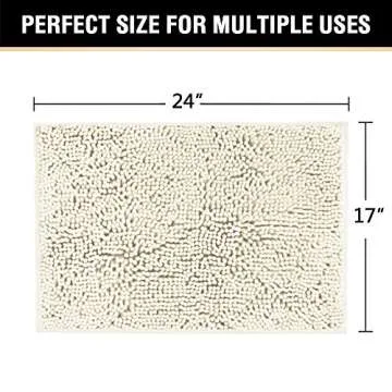 H.VERSAILTEX Bath Mat Bathroom Rug Bath Rugs for Bathroom Non Slip Bath Mats Extra Thick Chenille Rug 17" x 24" Absorbent Soft Shaggy Washable Dry Fast Plush Rugs for Bathtubs - Cream