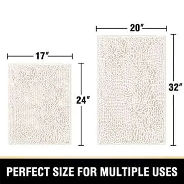 H.VERSAILTEX Bathroom Rugs, Bath Mats Non Slip Luxury Chenille Extra Soft Absorbent Shaggy, Washable Fast Dry Sets 2 Piece for Bathroom (Ivory, 20" x 32"/17" x 24")