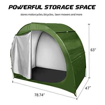 Show more Discover the ultimate outdoor protection with the H&ZT Oversized Bike Storage Tent, meticulously designed to safeguard your bicycles, lawn mowers, and garden tools from the elements. Constructed from top-notch waterproof Oxford cloth, this tent is equipped with a durable PU and UV coating, ensuring your belongings are shielded from rain, sun, and dust. With its impressive UV protection level of 50+, you can trust that your items will remain in pristine condition, enhancing their longevity.