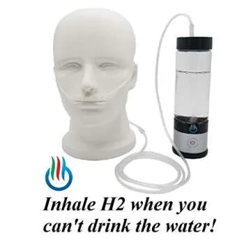 H2 USB Sport MAXX Hydrogen Water Generator with Glass Bottle and Inhaler Adapter (Silver)