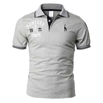 H2H Mens Casual Slim Fit Polo T-Shirts Basic Designed with Giraffe Embroidery Gray US XS/Asia M (KMTTS599)
