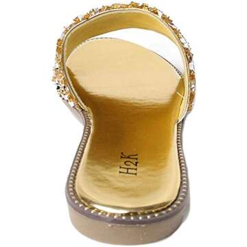 H2K Womens Glitter Bling Fancy Slide Flat Low Wedge Sparkle Sandals Shoes Dream, 5, Gold