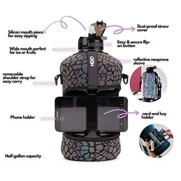 H2O Capsule 2.2L Half Gallon Water Bottle with Storage Sleeve and Covered Straw Lid – BPA Free Large Reusable Drink Container with Handle - Big Sports Jug, 2.2 Liter (74 Ounce) Cheetah Reflex
