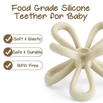 Haakaa Silicone Flower Teether for Babies - Food Grade Silicone Teething Toy - Teether Clip Prevent Losing