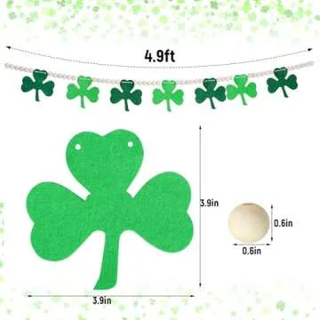 Haakong St Patricks Day Garland Shamrock Garland Decorations with Wooden Beads for Home Wall Party Supplies Decor