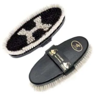 Haas 4025589206304 Cavaliere for women made of horsehair with longer bristle edge and leather hand strap, size 200 x 85 mm, the brush back is black.