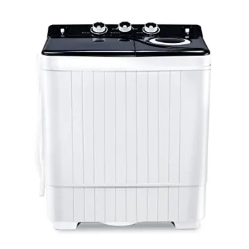 HABUTWAY Portable Washing Machine 26Lbs Capacity Washer&Dryer Combo Twin Tub Laundry 2 In 1 Washer(18Lbs) & Spinner(8Lbs) with Built-in Gravity Drain Pump,for Apartment,Dorms,RV Camping (black+white)