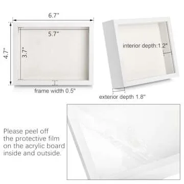 Hacaroa 6 Pack 4 x 6 Inches Shadow Box Frame, Small Wood Frame Memory Display Cases,1.2in Depth Picture Frame Case for Dried Flowers, DIY Craft, Memorabilia, Medals and Photos, White
