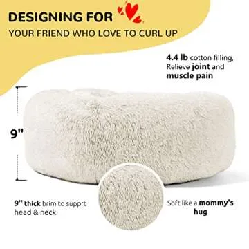 Show moreIntroducing the HACHIKITTY Dog Bed Calming Donut Cuddler, a luxurious haven designed for pets who deserve nothing but the best. With its delightful 30-inch diameter, this cozy bed is perfect for large dogs seeking a snug retreat. Fully embracing what pets love, it’s crafted from soft, shaggy vegan fur that mimics the warmth and comfort of a mother’s love. The unique donut shape invites your furry friend to curl up safely, enveloping them in a gentle embrace that is ideal for chilly months and frequent napping. It's more than just a bed; it’s the perfect spot for relaxation and peace, ensuring your beloved pet can enjoy restful sleep every night.
