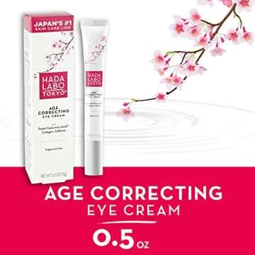 Hada Labo Tokyo Age Correcting Eye Cream, Anti-Aging Super Hyaluronic Acid, Collagen & Caffeine Reduce Wrinkles, Dark Circles & Under Eye Puffiness, Lift, Firm & Brighten Eyes, 0.5 oz