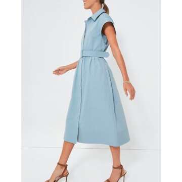 Haellun Women's Elegant Dress Classy Turn Down Collar Shirt Dress with Belt Short Wing Sleeve Trench Coat(Blue,XS)