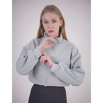 Haellun Women's Long Sleeve Half Zip Fleece Lined Crop Top Pullover Sweatshirt (Blue, Small)