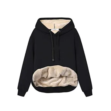 Haellun Women's Casual Winter Fleece Sherpa Pullover Hoodie - Black X-Small