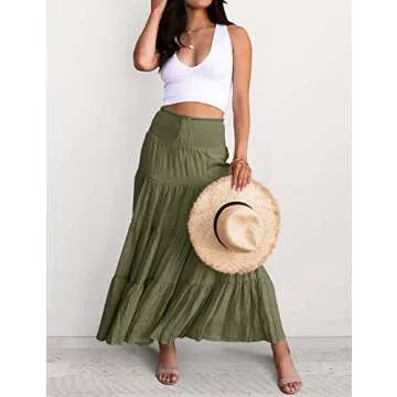 HAEOF Women's Summer Flowy Boho Maxi Skirt Trendy Drawstring Elastic High Waist Pleated Tiered A Line Beach Long Skirts