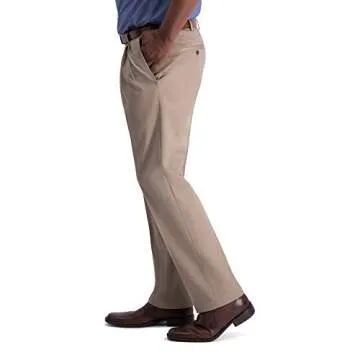 Haggar Men's Iron Free Premium Khaki Classic Fit Expandable Waist Trouser Pants