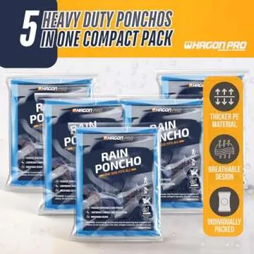 Introducing the Hagon PRO Disposable Rain Ponchos for Adults, a revolutionary solution for anyone eager to stay dry during unexpected downpours. Crafted with premium quality materials and designed for convenience, these ponchos are a must-have for commuters, festival attendees, and outdoor enthusiasts alike. Measuring a generous 48" x 40", each poncho ensures full coverage with a comfortable fit that allows for freedom of movement, making them suitable for all body types....