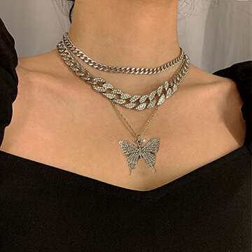 - Stunning Butterfly Pendant: The oversized butterfly pendant is intricately detailed and set with shimmering rhinestones, ensuring it's a head-turning accessory.