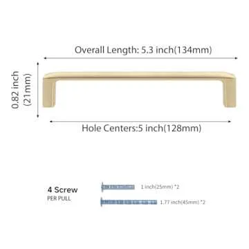 Installation is hassle-free with a hole center distance of 5 inches, making them compatible with a wide range of furniture including cabinets, wardrobes, dressers, closets, and desk drawers. The pack includes two sizes of screws: 1 inch and 1.77 inches, allowing customization based on your specific needs. The longer screws have also received a corrosion-resistant treatment, belting added durability.
