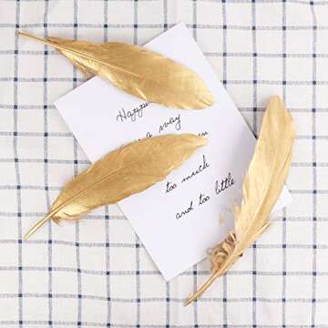 Why You Will Love This Product: Adding the HaiMay Gold Feathers to your crafting toolkit means embracing creativity without limits! Imagine the gleam of gold feathers accentuating your works of art, transforming simple designs into eye-catching highlights. They allow you to unleash your imagination, whether you're using them for costume embellishments, holiday decor, or luxurious wedding accents. Each feather carries a promise of quality and beauty, making every project a delightful experience for you and those who will admire your craftsmanship. Feel inspired to create stunning, memorable moments with the chic touch that these gold feathers bring!