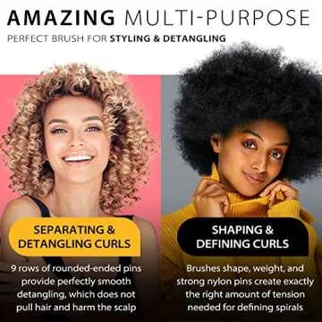 Hair Brush for Women Men Curly Wet or Dry Hair Classic Detangling Brushes 9 Row for Natural Thick Hair, Blow Styling Separating, Shaping Defining Curls Tools Travel Bristle Black Hairbrush