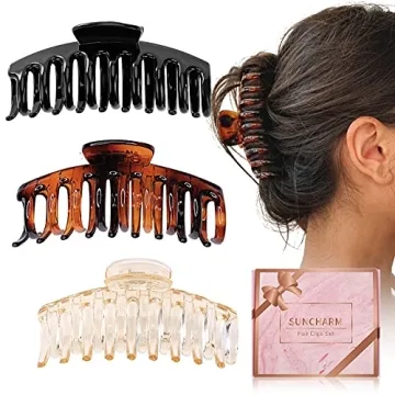 Each clip boasts a stylish French design that not only holds your hair securely but also elevates your overall look. The exquisite tortoise celluloid pattern is both trendy and timeless, enabling you to radiate elegance and sophistication, no matter the occasion. Crafted from premium ABS material, these large claw clips are built to last, providing robust support without sacrificing style.