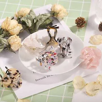 Hair Claw Clips for Women Girls, Funtopia 6 Pack 2.2 Inch Tortoise Barrettes Acrylic Hair Jaw Clips Clamp Celluloid Leopard Print Hair Clips for Thin Hair (Medium Size, Assorted Color)