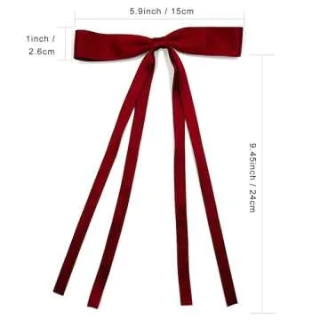 Hair Clips for Women Tassel Ribbon Bowknot With Long Tail, Clip Girl, Solid Accessories Barrettes Claw Bow (Burgundy,Black)