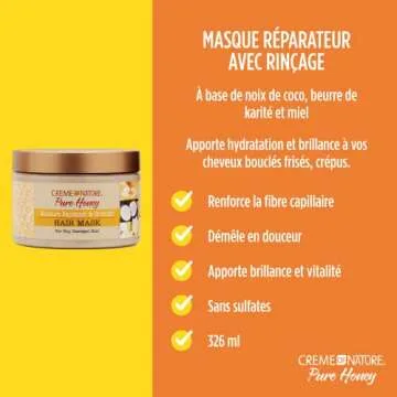 Hair Mask by Creme of Nature, Pure Honey, Coconut Oil and Shea Butter Formula, Moisture Replenish & Strength, 11.5 Oz