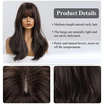 HAIRCUBE Brown Wigs with Bangs Medium Length Curly Wigs for Women Natural Looking Synthetic Wigs for Daily Use Pelucas De Cabello natural (Dark Brown)