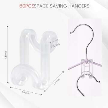 HAKDAY 60PCS Clear Clothes Hanger Connector Hooks, Heavy Duty Space Saving Hooks Hanger Connectors for Velvet Hangers Wooden Hangers Closet Organizer