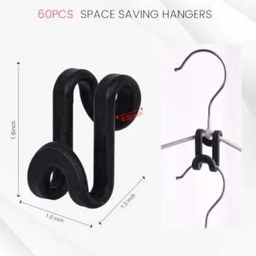 HAKDAY 60PCS Hanger Connector Hooks, Black Clothes Hanger Connector Heavy Duty Space Saving Hooks for Velvet Hangers Wooden Hangers Closet Organizer