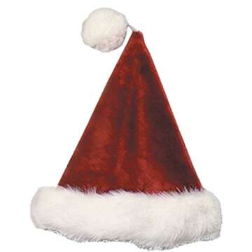 Show moreGet ready to spread holiday cheer with the Halco Premium Santa Hat featuring a luxurious burgundy plush velvet material. This Santa hat elevates your festive wardrobe with its eye-catching design, perfect for ensuring that you stand out during the holiday season. The hat is adorned with a long-haired faux fur band and a delightful 3.5-inch pom-pom that adds an extra touch of whimsy and joy. Comfortable and stylish, this Santa hat combines premium fashion and festive spirit, making it a must-have accessory for all your holiday gatherings.