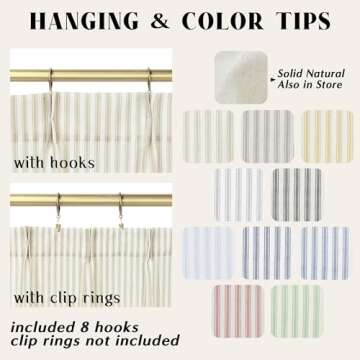 These versatile curtains come equipped with multiple hanging methods for your convenience. Option 1: Utilize the included hooks to pin the curtains to your own curtain rings for an elegant finish. Option 2: Use a back tab hanging style to conceal the tension rod for a seamless look. Option 3: Attach your own ring clips for a more laid-back approach. Whichever method you choose, the LINO ROSA curtains effortlessly blend functionality with aesthetic appeal.