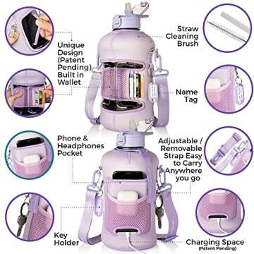 Why You Will Love This Product: Imagine a water bottle that not only quenches your thirst but also helps you stay organized wherever you go. This unique hybrid design transforms hydration into an effortless experience, allowing you to carry your essentials with ease. Say goodbye to the stress of fumbling with multiple bags and enjoy the bliss of having everything in one convenient spot. Delivering purpose without sacrificing style, the Half Gallon Water Bottle is a must-have in your daily routine, enhancing your experience with every sip.