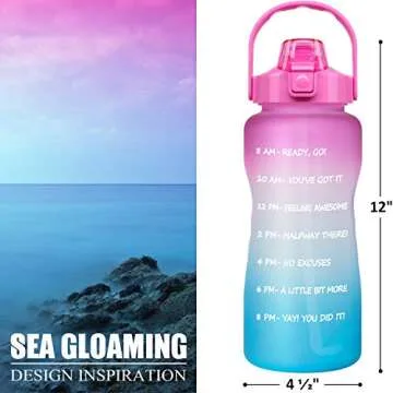 Show more If you struggle to stay hydrated throughout the day, our Half Gallon Motivational Water Bottle is here to help you achieve your hydration goals. Designed with a generous 64 oz (half-gallon) capacity, this BPA free reusable water bottle is not only eco-friendly but also tailored for an active lifestyle. The bottle features a built-in straw that allows for convenient sipping while on the go, making it perfect whether you're at the gym, in the office, or simply enjoying a day outdoors.