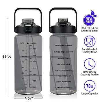 Half Gallon Water Bottle With Sleeve 70oz (2L) Inspirational Water Bottle With Straw and Time Stamp, Drinkable Leak-Proof Tritan BPA-Free Bottle for Daily Hydration, Sports Bottles