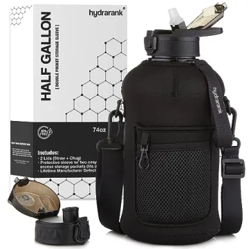 Show more Introducing the Half Gallon Water Bottle with Storage Sleeve and Straw Lid - the ultimate hydration solution for fitness enthusiasts and anyone keen on maintaining a healthy lifestyle. Crafted from BPA-free materials, this impressive 74-ounce water bottle allows you to take charge of your hydration goals with ease. Its generous capacity means fewer refills and more time enjoying your favorite activities. The stylish, reusable design is not only eye-catching but also practical, featuring a durable neoprene sleeve to prevent sweating and leaks. Whether you’re at the gym, on a hike, or navigating daily errands, this water jug ensures you have enough hydration by your side.