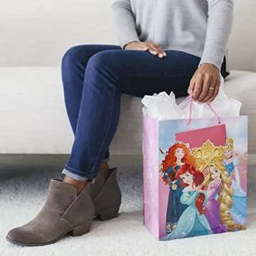 Hallmark 13" Large Gift Bag with Birthday Card and Tissue Paper (Disney Princesses)