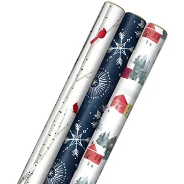 Show more Embrace the joy of giving with Hallmark's Christmas Wrapping Paper Set, where creativity meets practicality. This enchanting collection, comprising three rolls of beautifully designed wrapping paper, measures 30 inches wide by 16 feet long per roll, offering a generous total of 120 square feet for all your gift-wrapping needs. Delight in the captivating designs, including the elegant white birch trees adorned with charming red cardinals, mesmerizing snowflakes gracefully dancing against a deep blue backdrop, and a heartwarming snowy village scene filled with colorful buildings. Each design is crafted to elevate the presentation of your gifts, making them truly unforgettable.